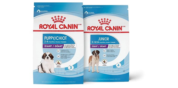 Your giant puppy can benefit from a diet that supports healthy weight and muscle development to keep his body growing strong. That’s why Royal Canin Giant Puppy and Giant Junior dog foods are tailor-made for the healthy growth and development of very large dog breeds—specifically, those that will have an adult weight of over 100 pounds.