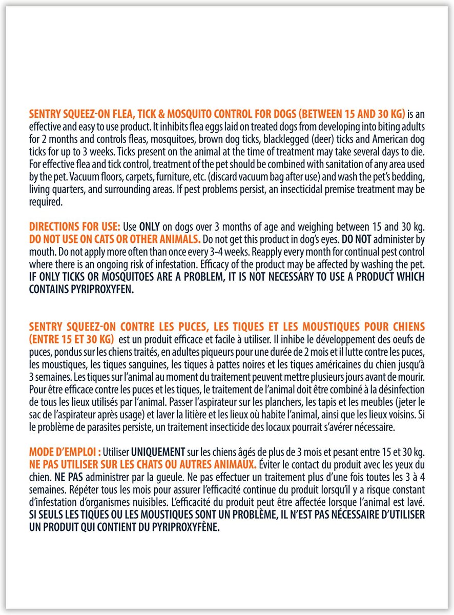 Sentry Squeez-On Flea Tick & Mosquito Treatment for Dogs, 15-30 kg