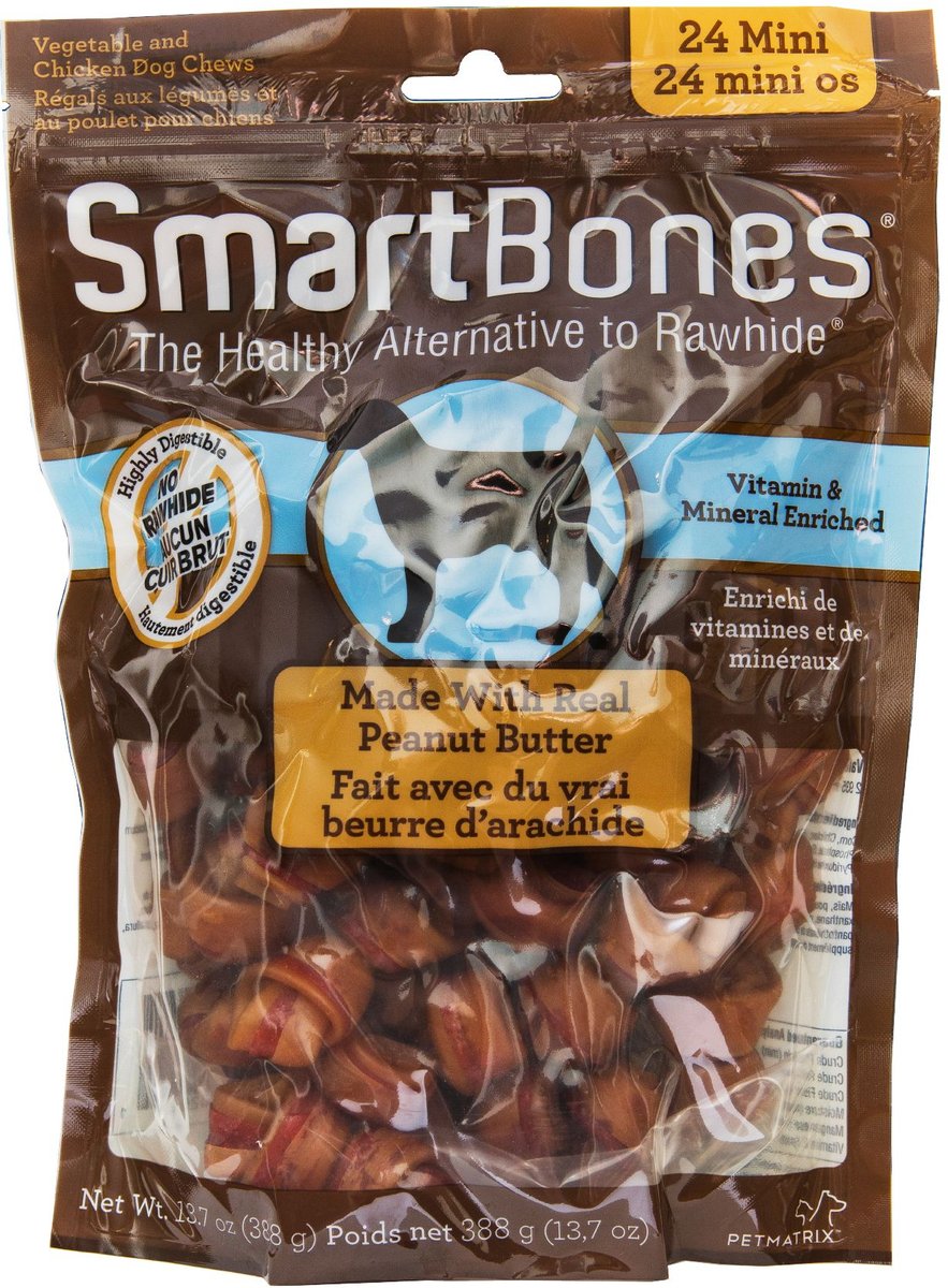 SmartBones Peanut Butter Mini Bones Dog Treats, 24 count