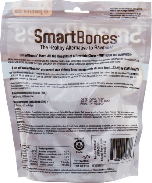 SmartBones Peanut Butter Small Bones Dog Treats, 6 count