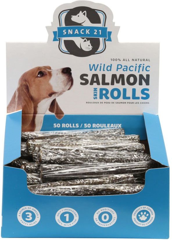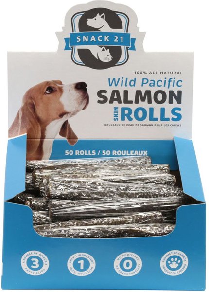 Snack 21 Wild Pacific Salmon Skin Rolls Dog Treats, 50 count