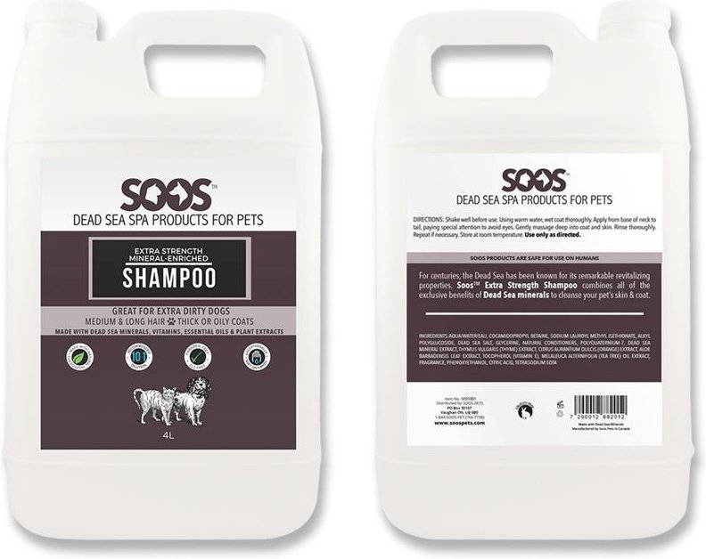 Soos Pets Extra Strength Mineral Enriched Dog & Cat Shampoo, 4-L bottle