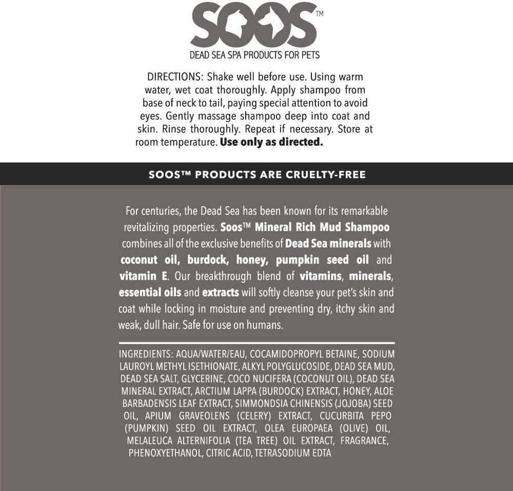Soos Pets Mineral Rich Mud Dog & Cat Shampoo, 250-mL bottle