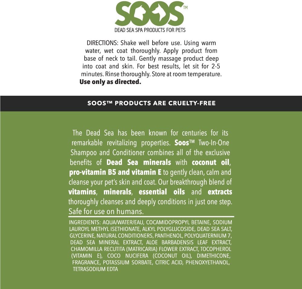 Soos Pets Two-in-One Dog & Cat Shampoo & Conditioner, 500-mL bottle