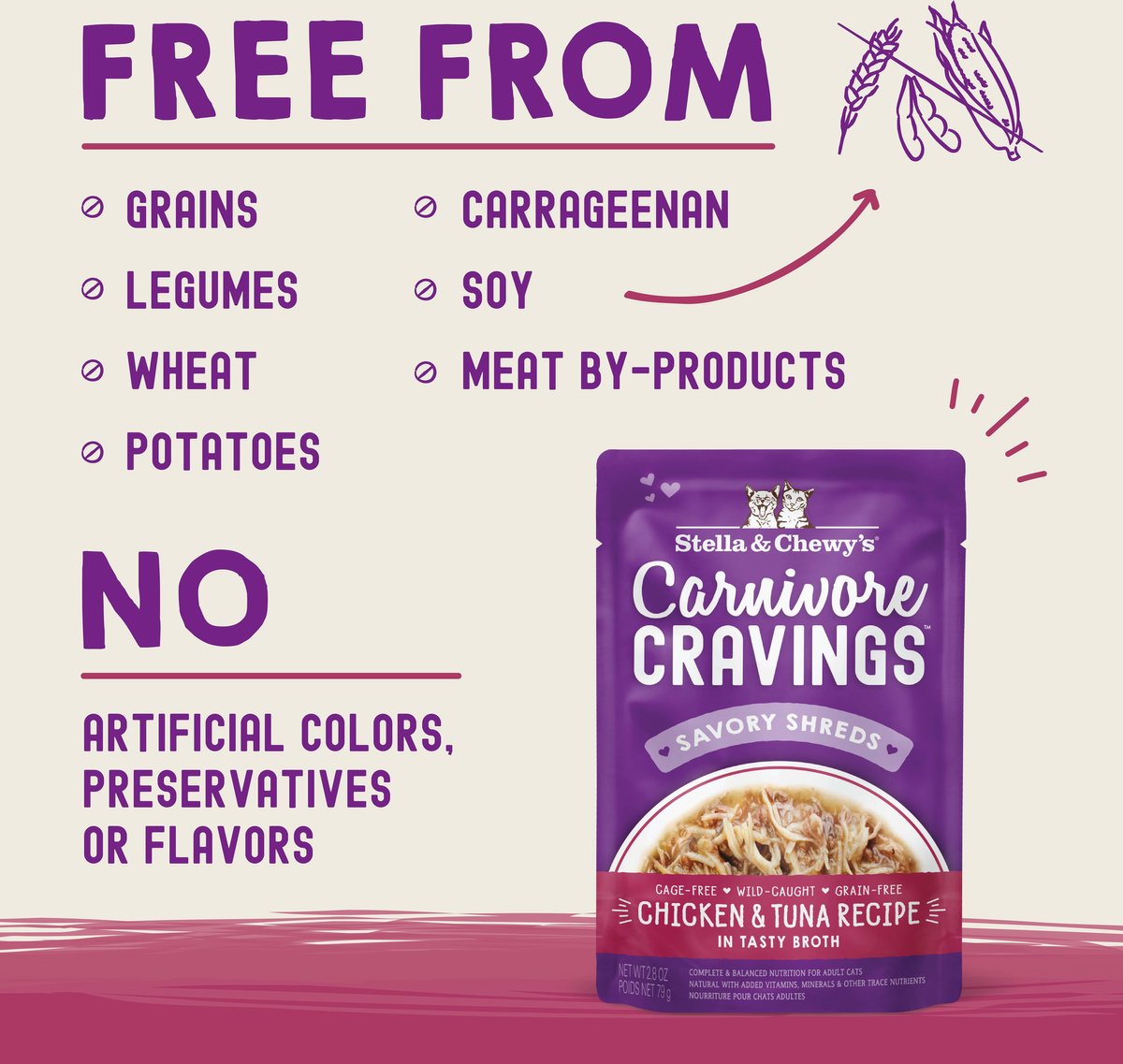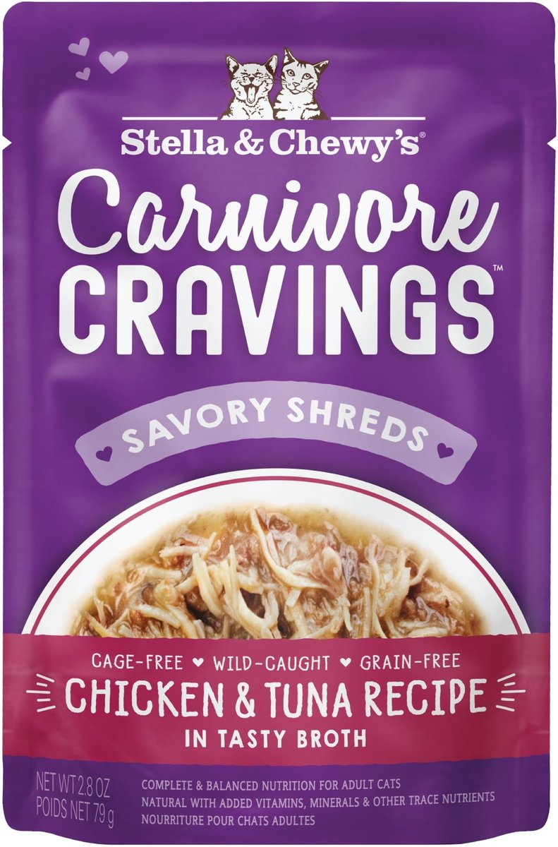 Stella & Chewy's Carnivore Cravings Chicken & Tuna Flavored Shredded Wet Cat Food, 2.8-oz pouch, case of 12