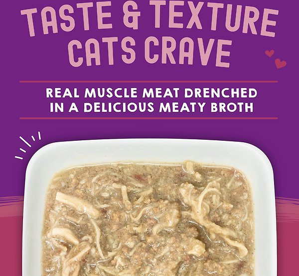 • This food is packaged in handy, easy-open pouches and is packed with protein-rich muscle meat that’s always the first ingredient.