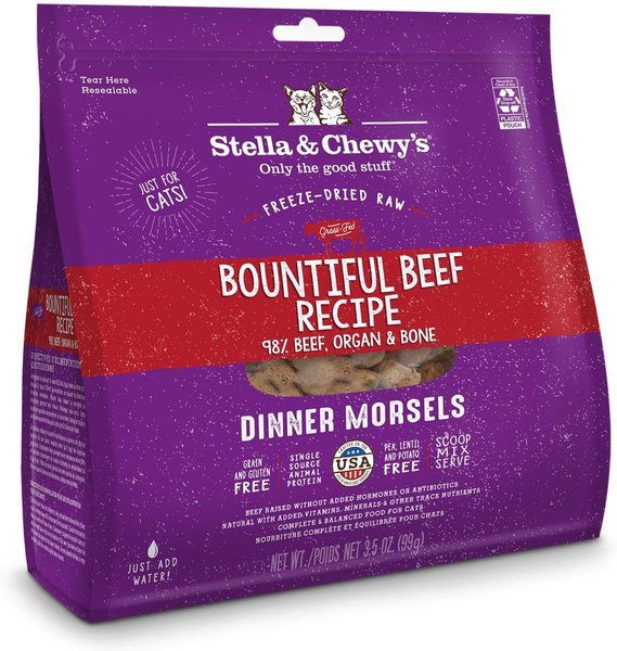 Stella & Chewy's Freeze-Dried Raw Dinner Morsels Grain-Free Protein Rich Bountiful Beef Recipe Cat Food, 3.5-oz bag