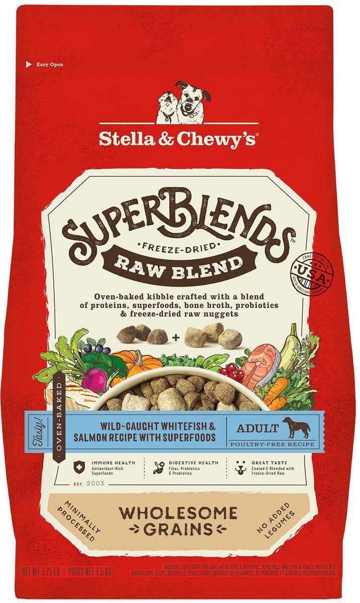 Stella & Chewy's SuperBlends Raw Blend Wholesome Grains Wild-Caught Whitefish & Salmon Recipe with Superfoods Dry Dog Food, 1.47-kg bag