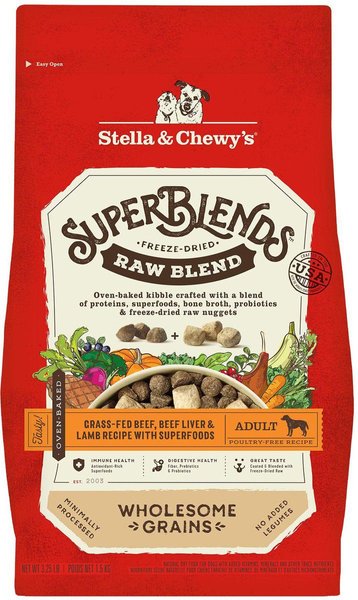 Stella & Chewy's SuperBlends Raw Blend Wholesome Grains Grass-Fed Beef, Beef Liver & Lamb Recipe with Superfoods Dry Dog Food, 1.47-kg bag