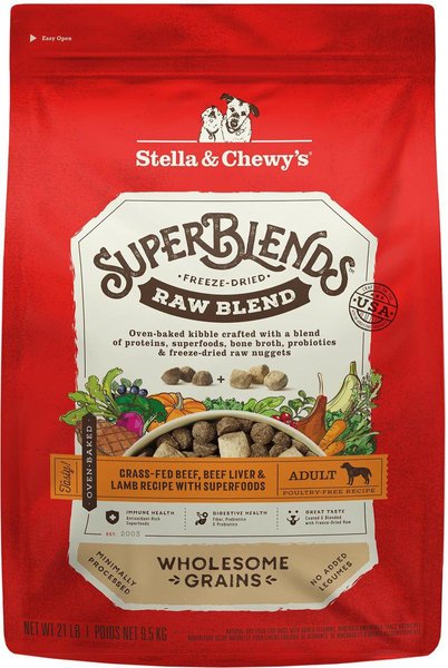 Stella & Chewy's SuperBlends Raw Blend Wholesome Grains Grass-Fed Beef, Beef Liver & Lamb Recipe with Superfoods Dry Dog Food, 9.53-kg bag