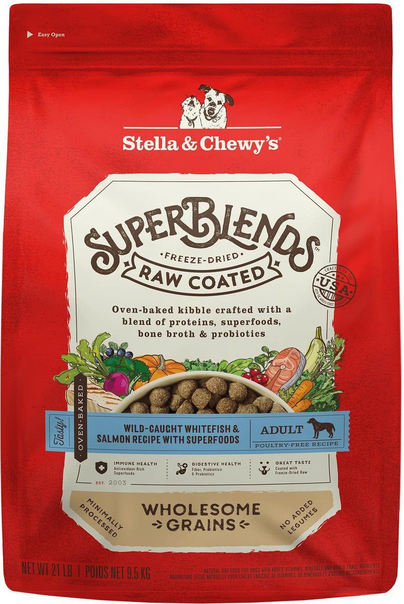 Stella & Chewy's SuperBlends Raw Coated Wholesome Grains Wild-Caught Whitefish & Salmon Recipe with Superfoods Dry Dog Food, 9.53-kg bag