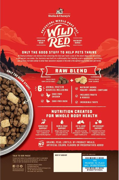 Stella & Chewy's Wild Red Raw Blend Kibble Grain-Free Prairie Recipe Dry Dog Food, 9.53-kg bag