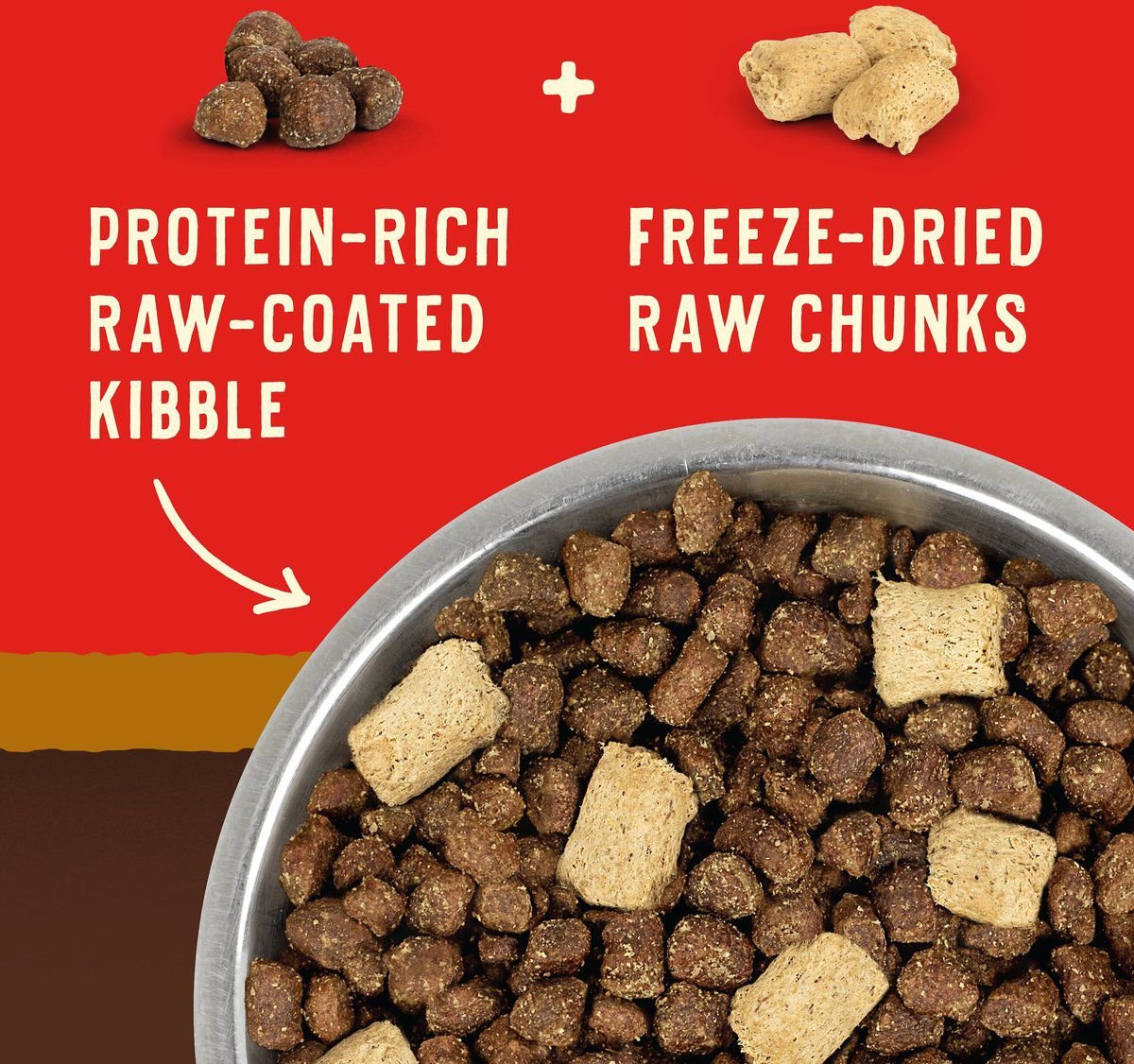 - Freeze-dried raw meat coats every delectable bite with added raw chunks.