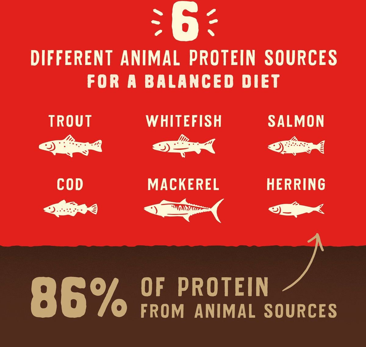 - Packed full of protein with trout, whitefish, salmon, cod, mackerel, and herring.