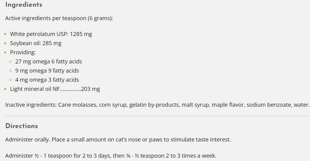 is tomlyn hairball gel safe for kittens