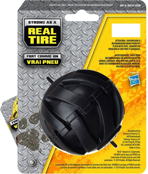 We bought this about a week ago and within about 3 hours most of this damage occured. We have a 9 month old pup and she was through it in no time and ingested little pieces. I was really surprised given it's "Tonka"... Perhaps Tonka should just stick to children's toys as this is a complete fail!