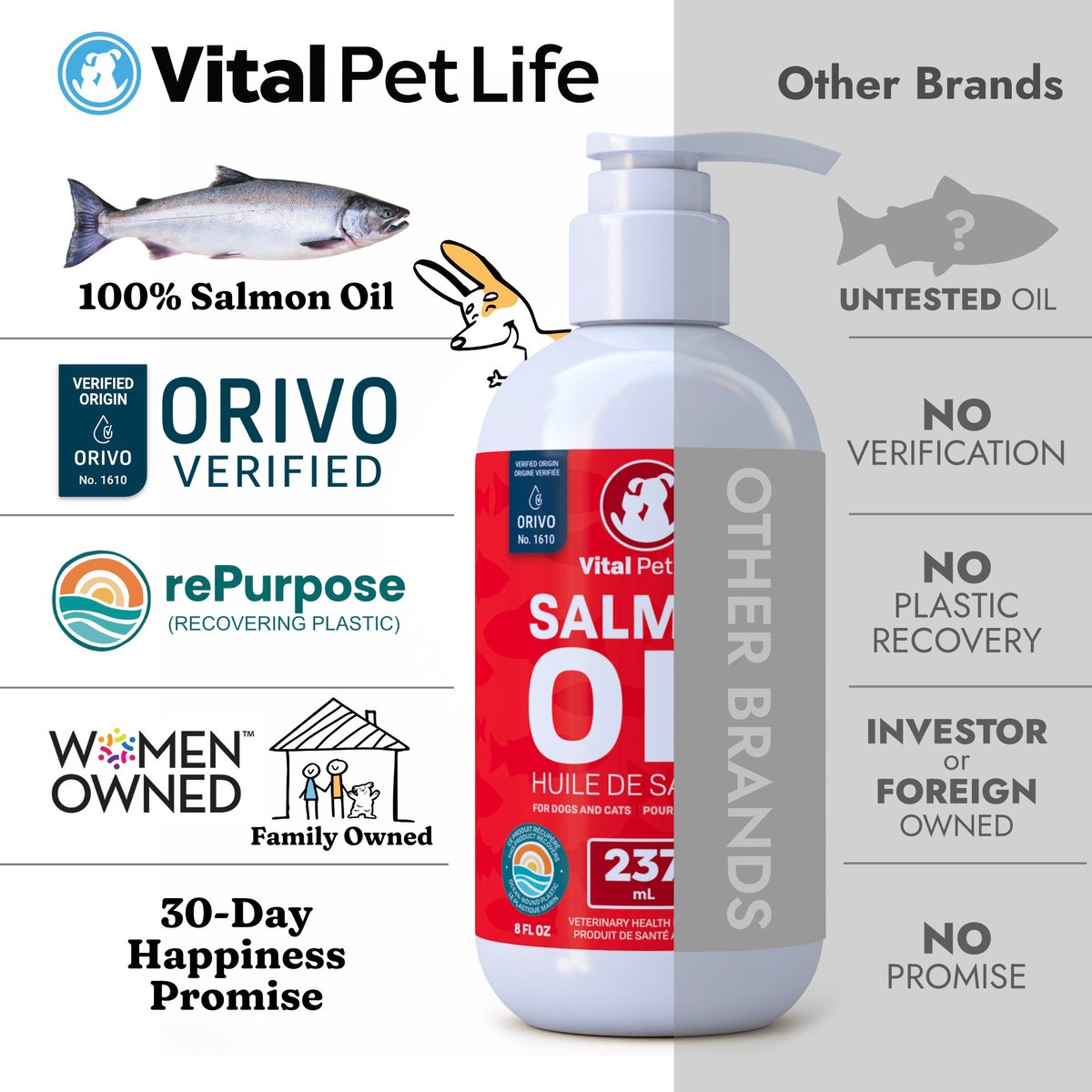 - This supplement is great for kitties and pups with orivo-verified 100% salmon oil.