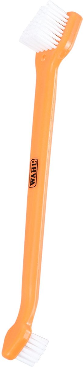 Provides a dual-head soft-bristle toothbrush with a regular and small head.