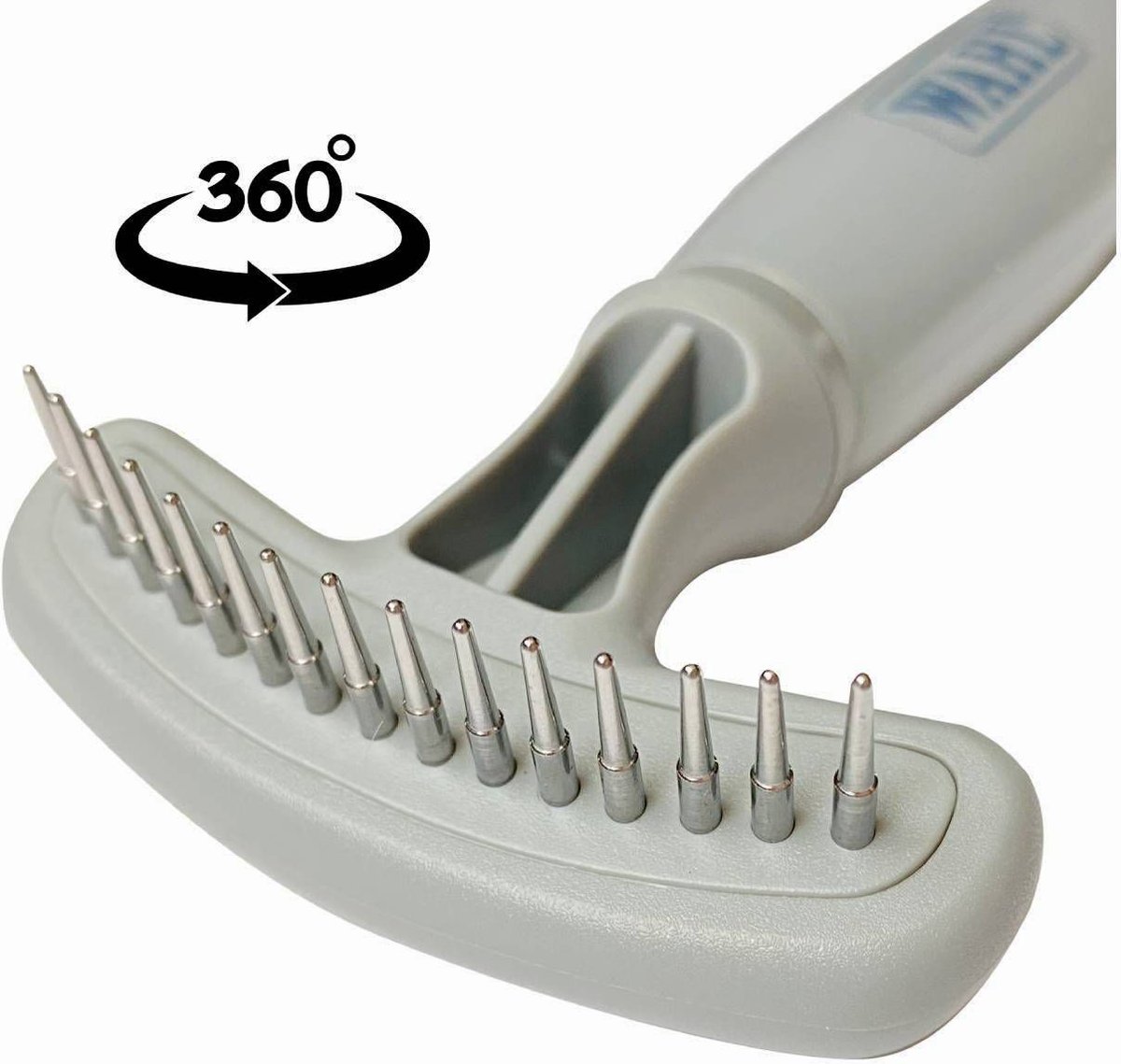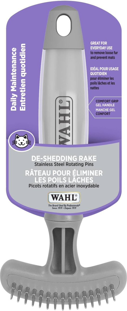 Features round tip pins that easily remove loose fur.
