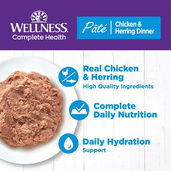 Wellness Complete Health Chicken & Herring Formula Grain-Free Canned Cat Food, 85-g can, case of 24