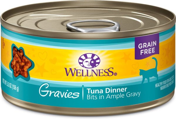 Wellness Complete Health Natural Grain-Free Gravies Chicken & Tuna Dinner Canned Cat Food, 156-g can, case of 12