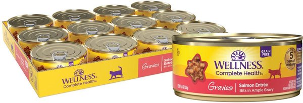 Wellness Complete Health Natural Grain-Free Gravies Salmon Entree Canned Cat Food, 156-g can, case of 12