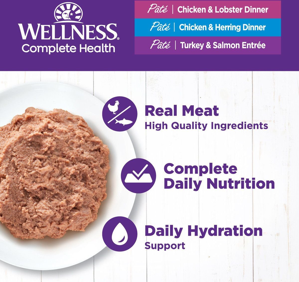 Wellness Complete Health Seafood Pate Favorites Canned Cat Food, 85-g can, case of 24