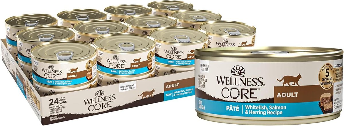 Wellness CORE Grain-Free Salmon, Whitefish & Herring Pate Canned Kitten & Cat Food, 156-g can, case of 24