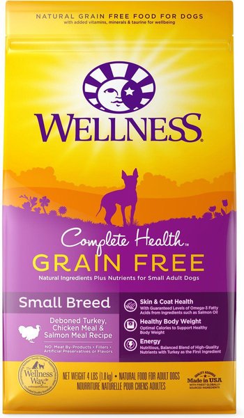Wellness Grain-Free Complete Health Small Breed Adult Deboned Turkey, Chicken Meal & Salmon Meal Recipe Dry Dog Food, 5-kg bag