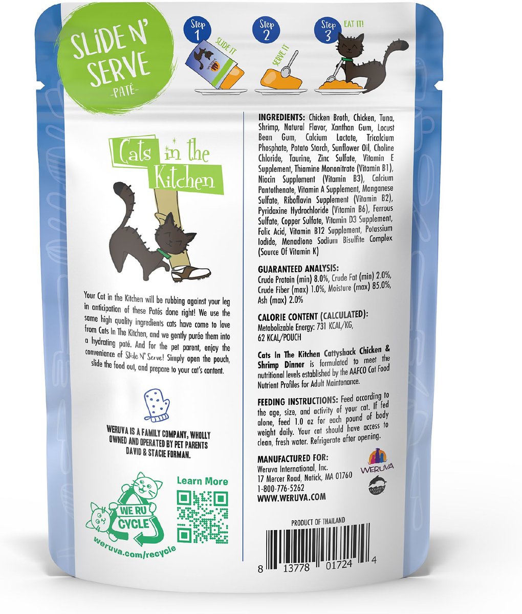 Weruva Cats in the Kitchen Cattyshack Chicken & Shrimp Pate Grain-Free Wet Cat Food, 3-oz pouch, case of 12