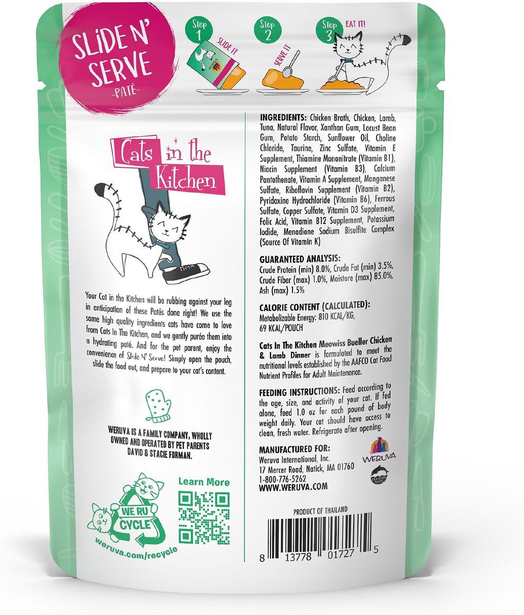 Weruva Cats in the Kitchen Meowiss Bueller Chicken & Lamb Pate Grain-Free Wet Cat Food, 3-oz pouch, case of 12