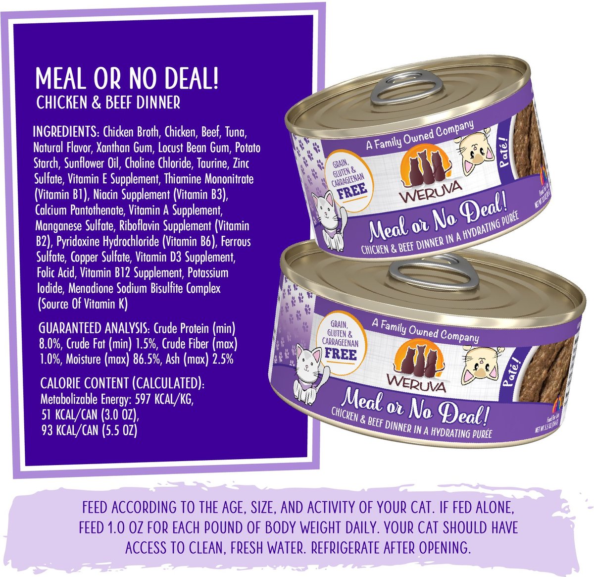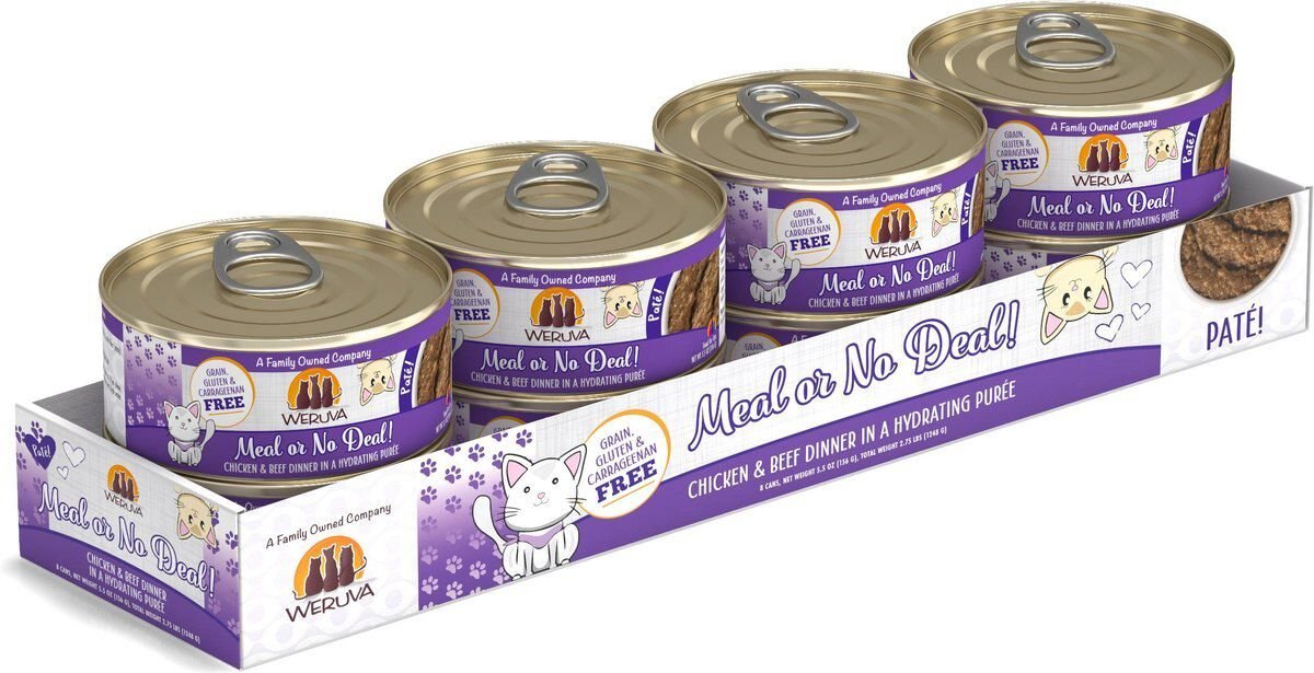 Weruva Classic Cat Pate, Meal or No Deal! Chicken & Beef Grain-Free Wet Cat Food, 5.5-oz can, case of 8