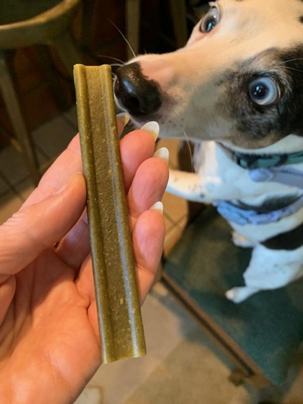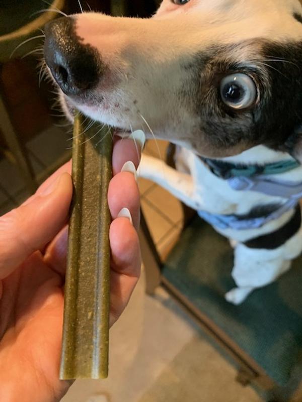 Sadie has loved Whimzees since we first tried them as a sample. She likes the Freshzees a tad better than the originals and I accidentally ordered the large size and she loved those!