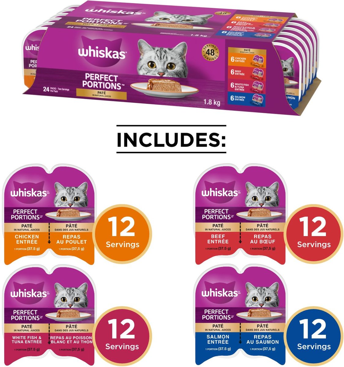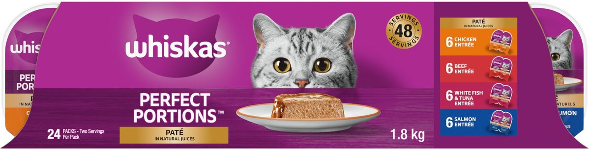 Whiskas Perfect Portions Paté Variety Pack Wet Cat Food, 75-g tray, case of 24