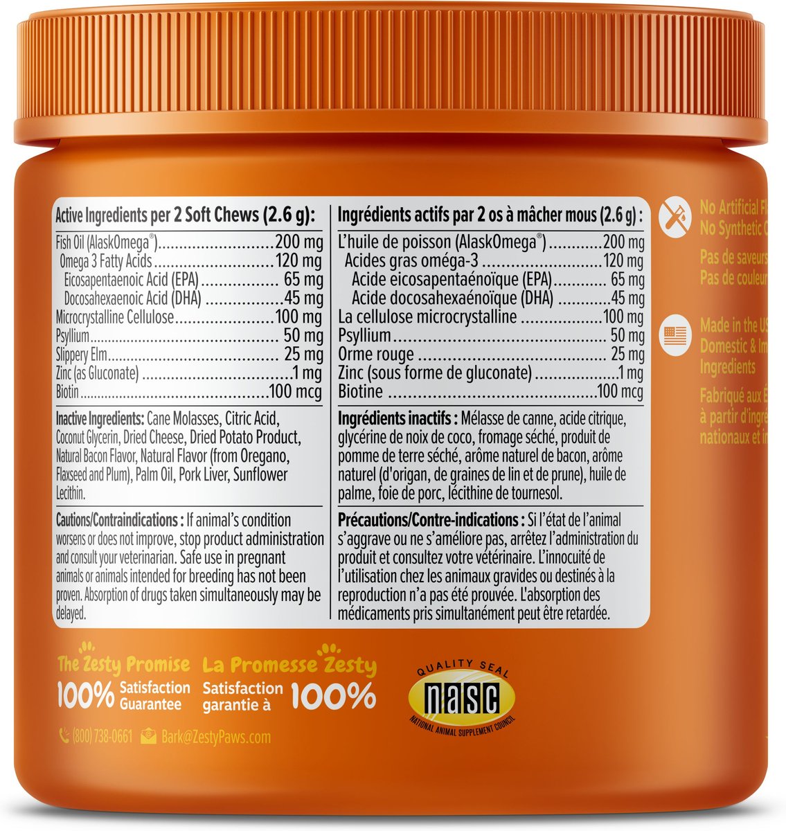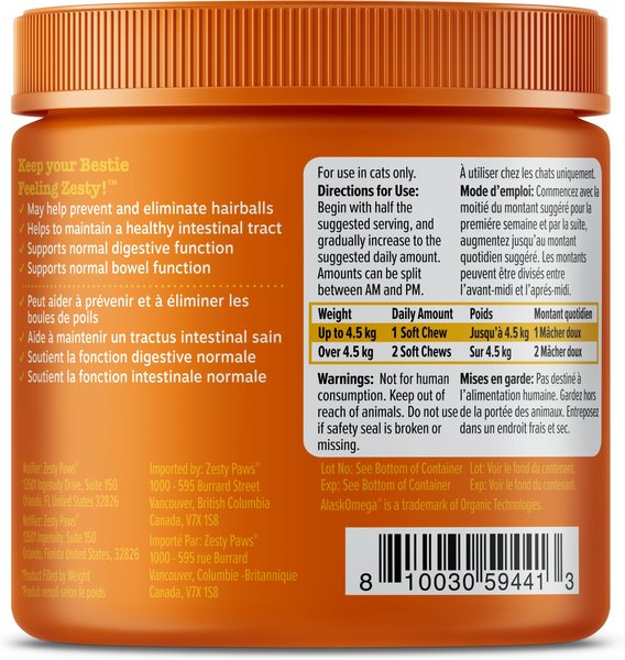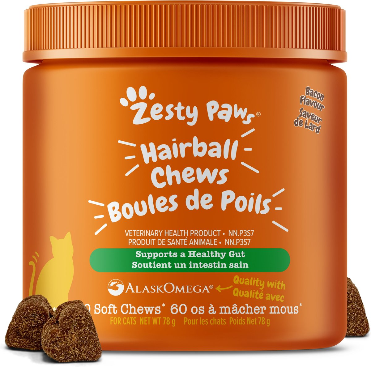 Zesty Paws Hairball Bites Bacon Flavored Soft Chews Digestive Supplement for Cats, 60 count
