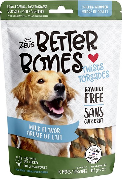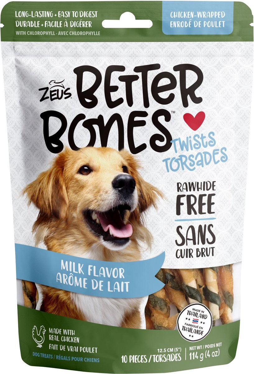 Zeus Better Bones Milk Flavour Chicken Wrapped Twists Dog Treats, 10 count