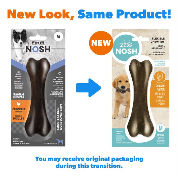Zeus Nosh Flexible Puppy Chicken Flavour Chew Bone Dog Toy, Medium