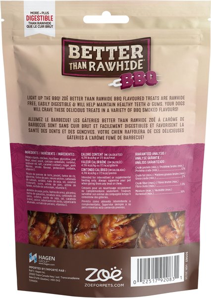 Zoe Better Than Rawhide BBQ Rib Pork Flavour Hard Chew Dog Treats, 4 count