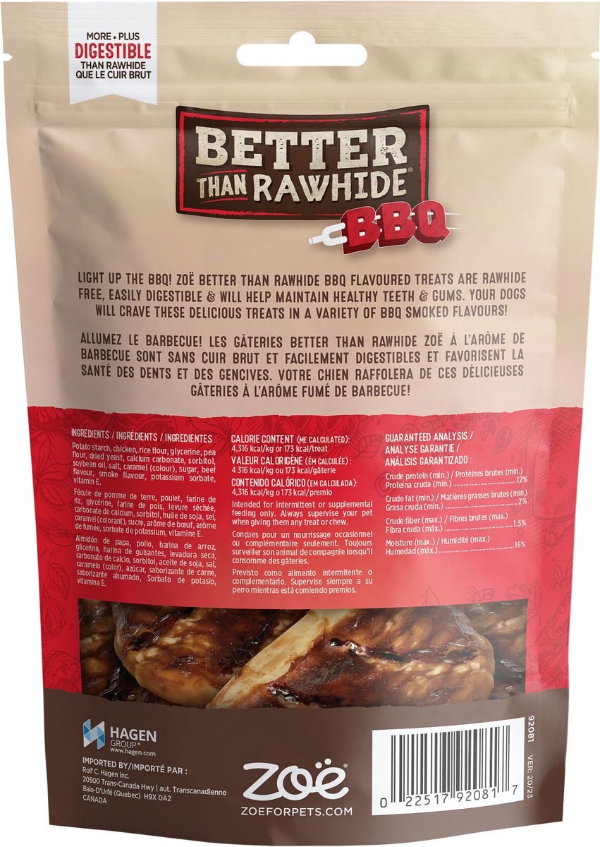 Zoe Better Than Rawhide BBQ Steak Beef Flavour Hard Chew Dog Treats, 4 count