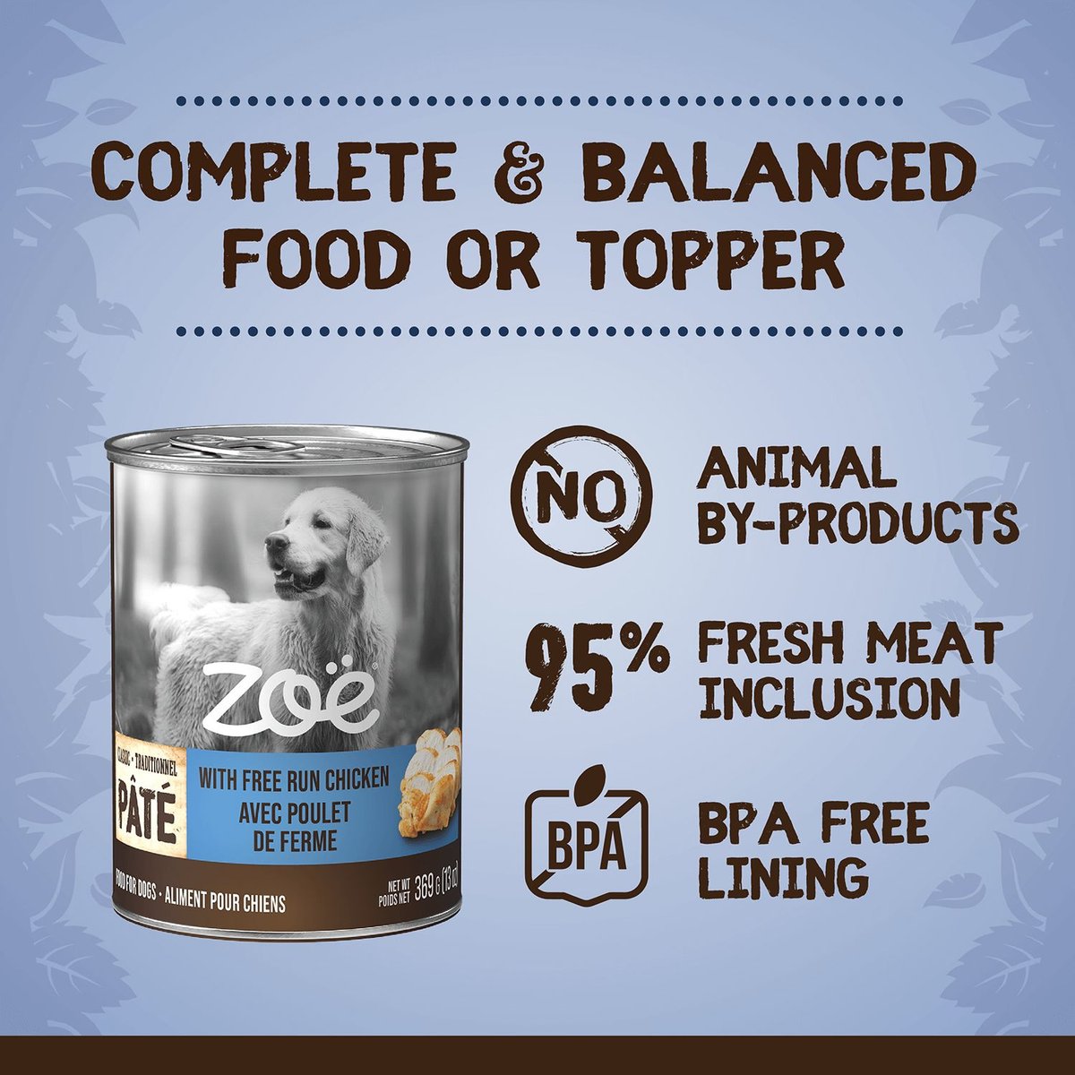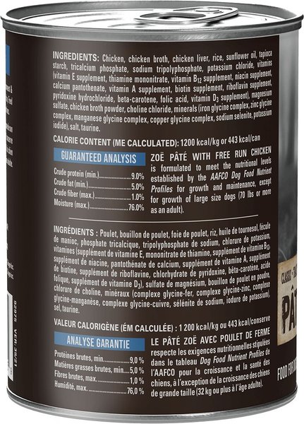 Zoe Free Run Chicken Pate Wet Dog Food, 369-g can, case of 6