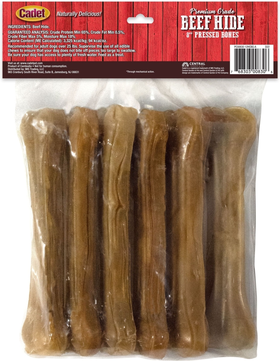 Cadet Premium Grade Pressed Beef Hide Dog Chew Bones, 8-in
