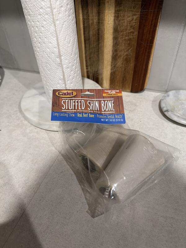 - DealCadet Stuffed Shin Bones Peanut Butter Flavor Dog Bones, 1 pack$5.79 Chewy Price$5.50 Autoship PricePromo, Spend $100, Get $30 eGift Card with code NEWYEAR +1 deal