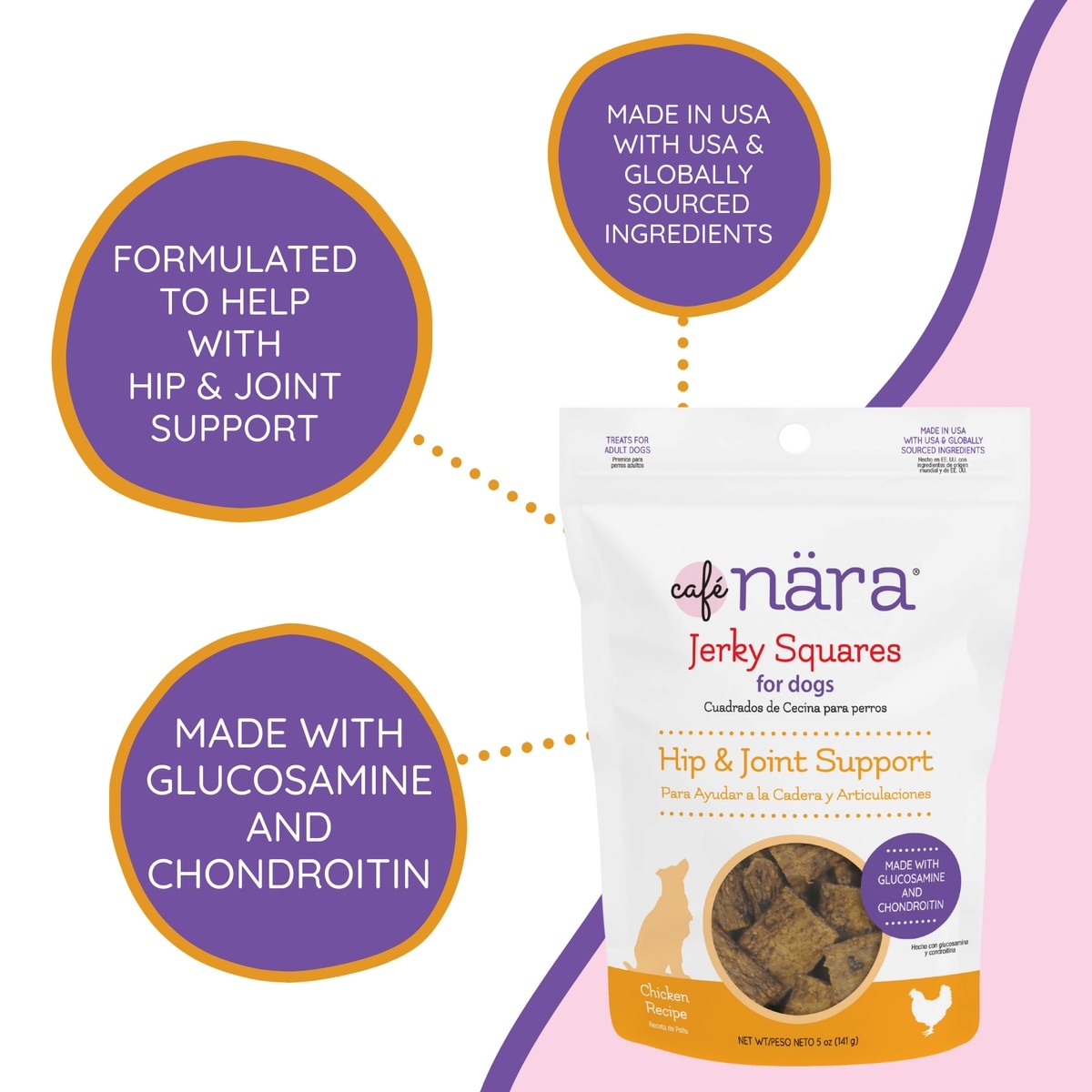 Cafe Nara Jerky Squares Chicken Flavor Hip & Joint Support Dog Treats, 5-oz bag