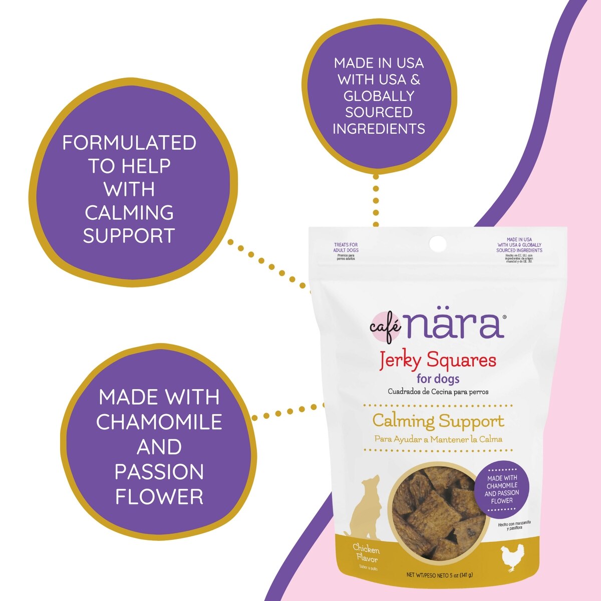 Cafe Nara Jerky Squares Chicken Flavor Calming Support Dog Treats, 5-oz bag
