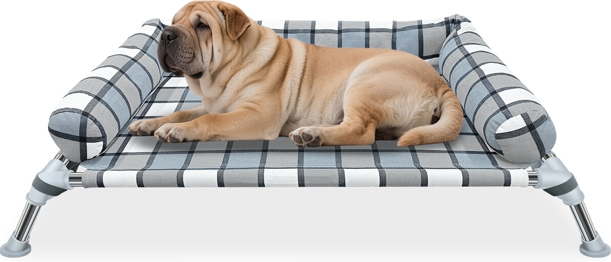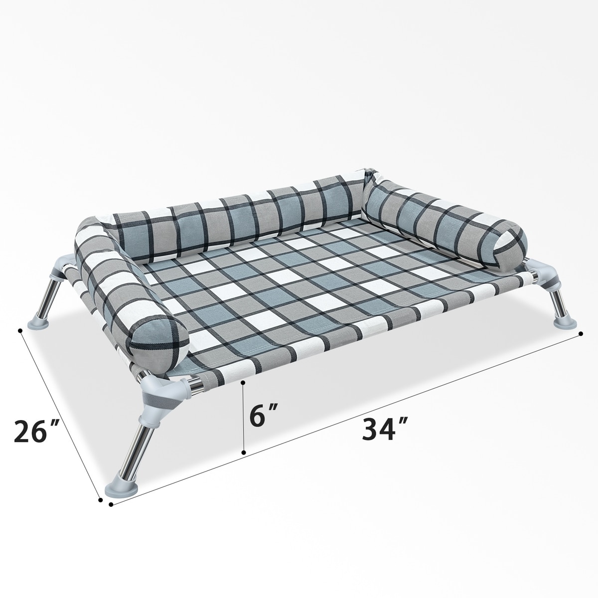 Caghash Raised Elevated Anti-Slip Foot Outdoor & Indoor Dog & Cat Bed with Pillows, Blue/White/Grey, Medium