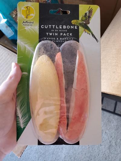 I purchased this and you can tell it was not fresh. They packaging was rouged up and it was clearly stapled back together with an ordinary stapler. Plus one of the cuttle bones had a strange stain/ mold on it.