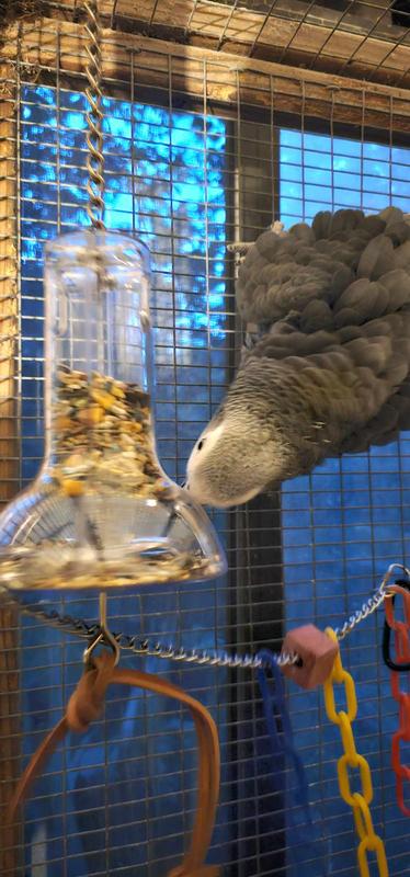 I primarily chose this toy because of the African Grey pictured. It was alittle hard to fill, but overall, it was a great choice for my own African Hrey, Echo