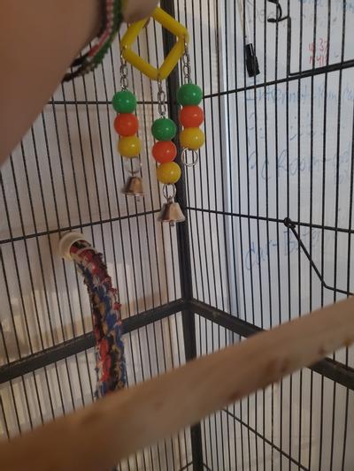 My Greencheeck Conure/Brazil Parakeet just loves his new toy and started playing with it as soon as i hung it in his cage. He loves the way the round plastic balls feel in his mouth. Some birds may remove the clapper inside the bells. You may want to remove it with a small pair of pliers to prevent your bird from swallowing it.