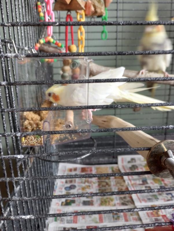 This is really pretty nice. I have a large cage so hanging it on the outside didn't work very well, but it works well on the inside. My birds were afraid to go