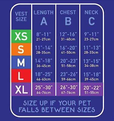 Yes, here is the size chart for the Calm Paws Calming Recovery Dog Vest.